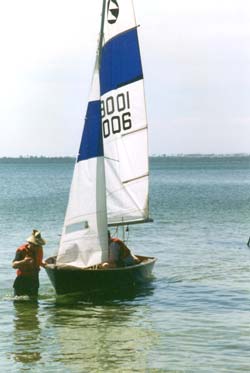 What's the book about? Joshua Cullen One evening, while out sailing their dingy, Joshua and Zoe are becalmed, and have to tow the boat home, along the lake's edge. Zoe persuades Joshua to go back and investigate, where they see what appears to be a body in the bracken. Before they can investigate, the utility returns, and after nearly being discovered, they escape. The parents disbelieve their story, especially after Joshua fails to find the campsite the next day. The local police are informed, but also disbelieve their story. Joshua and Zoe however, days later, find the campsite again, together with a number of bank notes ground into the sand beside the fire, but there is no sign of a body, and they are uncertain what they have seen. However during the week, the empty motorboat is found and there are three armed hold ups in Lakes Entrance over New Year's Eve. A suspicious person tries to entice Josh's little brother, into telling him what Zoe and Joshua saw in the Park, and offers him a ride on his motorbike. Jim escapes him through luck. The story ends some smart detective work and an exciting outcome. Comments from Bron Blake My family has been going to an old holiday house at Loch Sport on the Gippsland Lakes (Vic) for nearly twenty years, so it was inevitable that one of my books would be set there. We had a great launch of this book in Sale, (Vic) and Patrick Watts, one of the aerobatic Roulettes from the Sale Air Force base did the honours. Patrick practices loops in the air over our house, so it was interesting to see him close up and realise he looked quite sensible and normal! The thing I enjoyed most about writing 'Dangerous Waters' was making it funny, and making Zoe so bossy and scheming. That's the fun of writing. You can make your characters whatever you want, even if it's simply to entertain you! Reviews of Dangerous Waters 'I enjoyed this book because it gave me a shiver up my spine when I read a freaky part.' 'While checking out a fire on a beach, they suddenly find themselves in the middle of a murder investigation! Dangerous Waters is a really good read for anyone who likes mystery/crime books.' home & books | about Bronwyn | news | faq | links | guestbook | contact |
